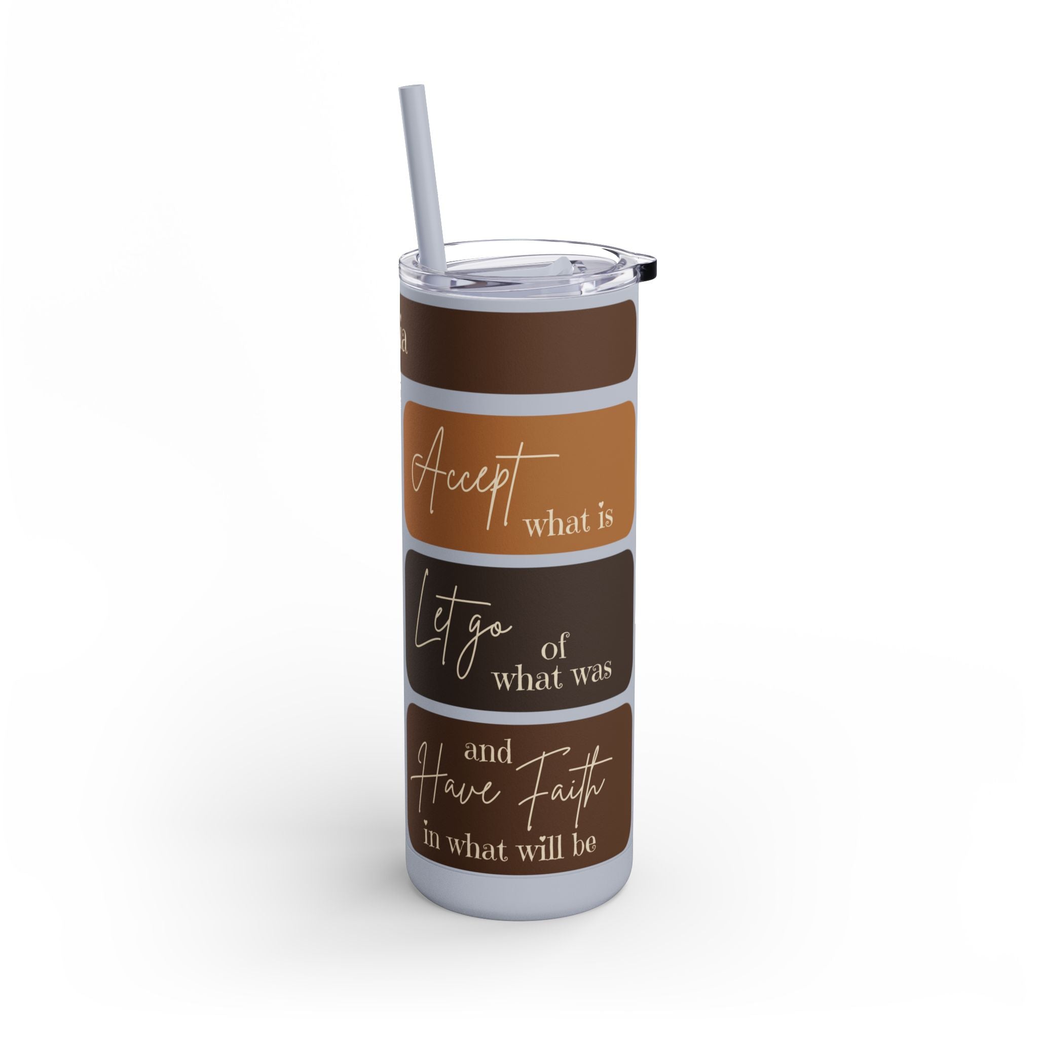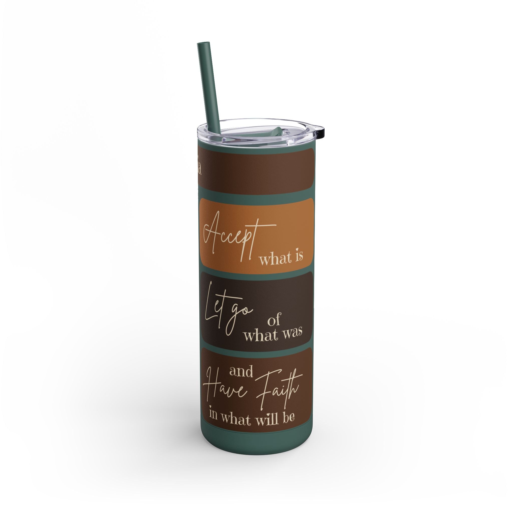Carry calm, faith, and strength with you wherever you go. Our 20oz Accept What Is Tumbler features the uplifting mantra: