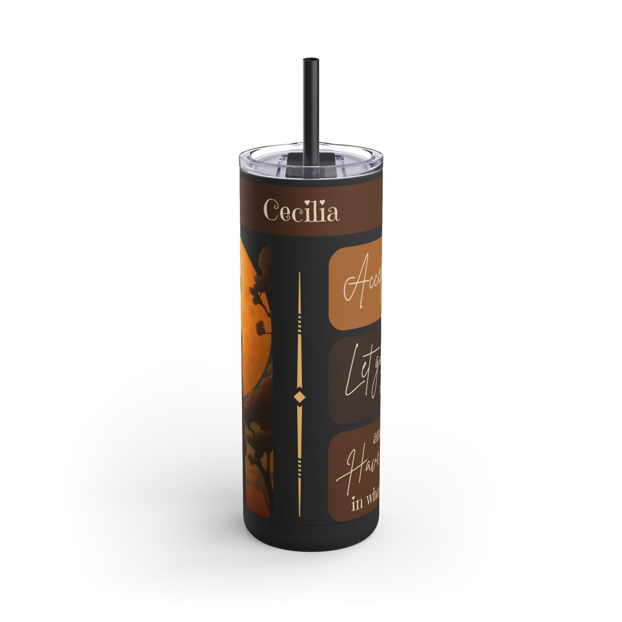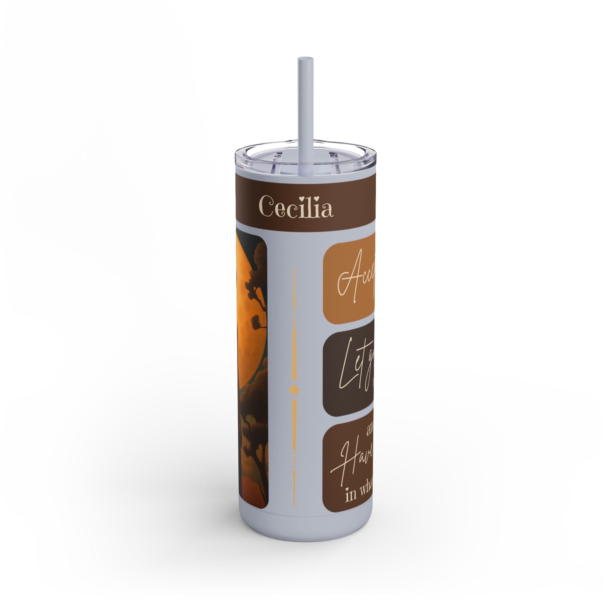 This daily reminder of resilience and peace makes the tumbler more than just drinkware—it’s inspiration on the go. Personalize it with your name or a loved one’s name for a meaningful touch that turns every sip into a moment of reflection.