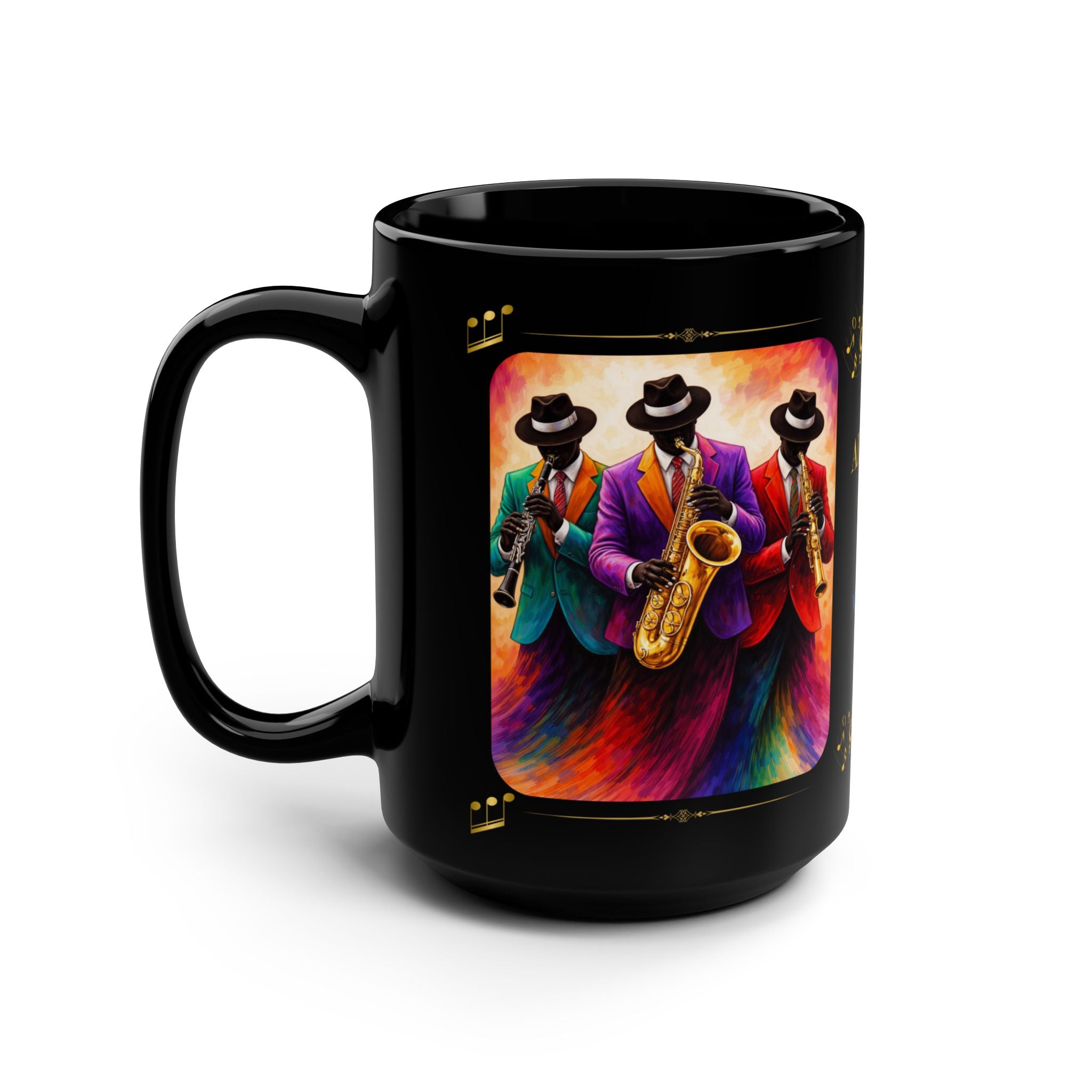 Our All That Jazz 15oz Mug captures the smooth, timeless energy of live music — where style, sound, and expression come together in perfect harmony. Featuring bold, vibrant artwork of sharply dressed musicians in motion, this design brings a touch of sophistication and creativity to every sip.