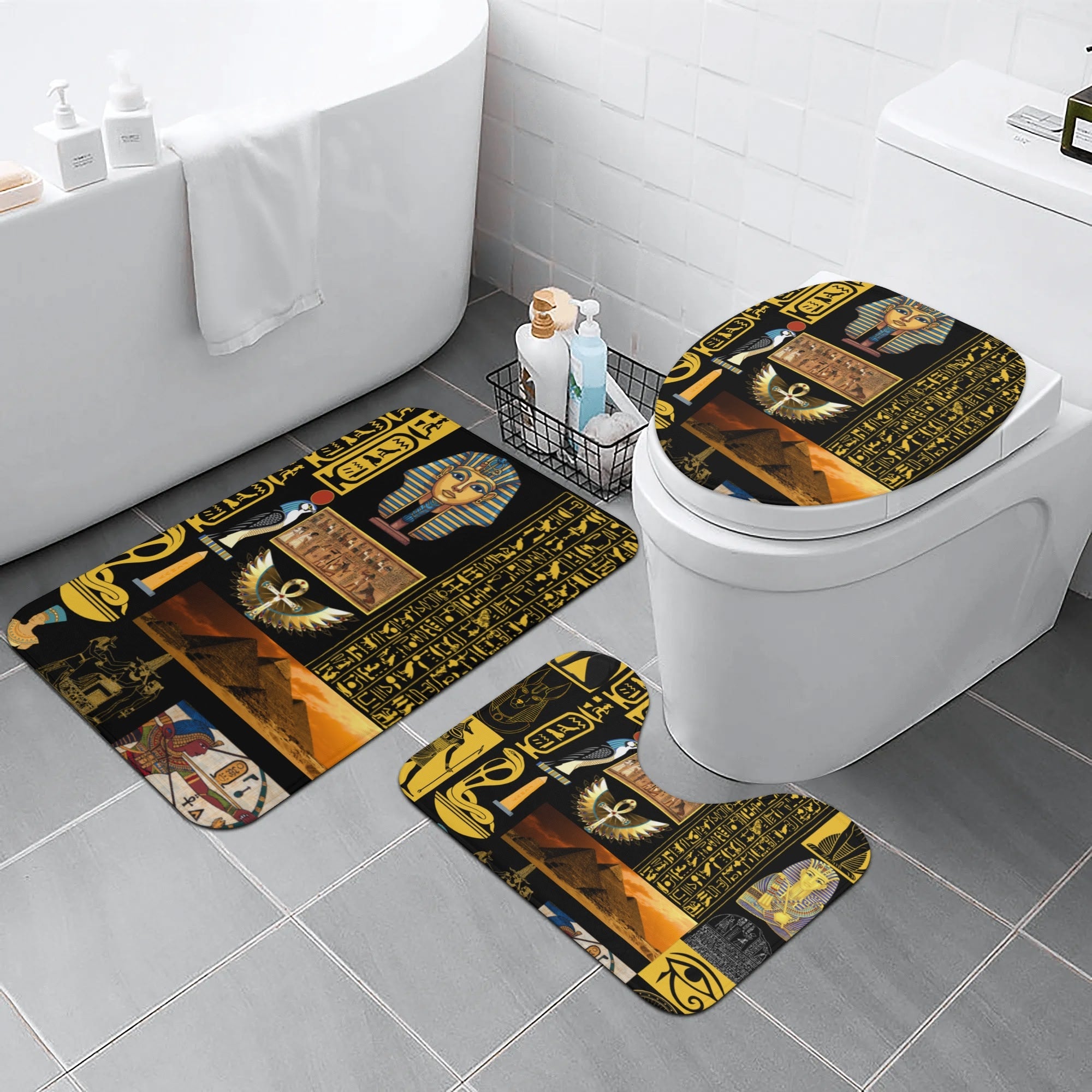 Ancient Egyptian 3-Piece Bathroom Rug Set – Stunning Décor for a Bold, Regal Bathroom Transformation