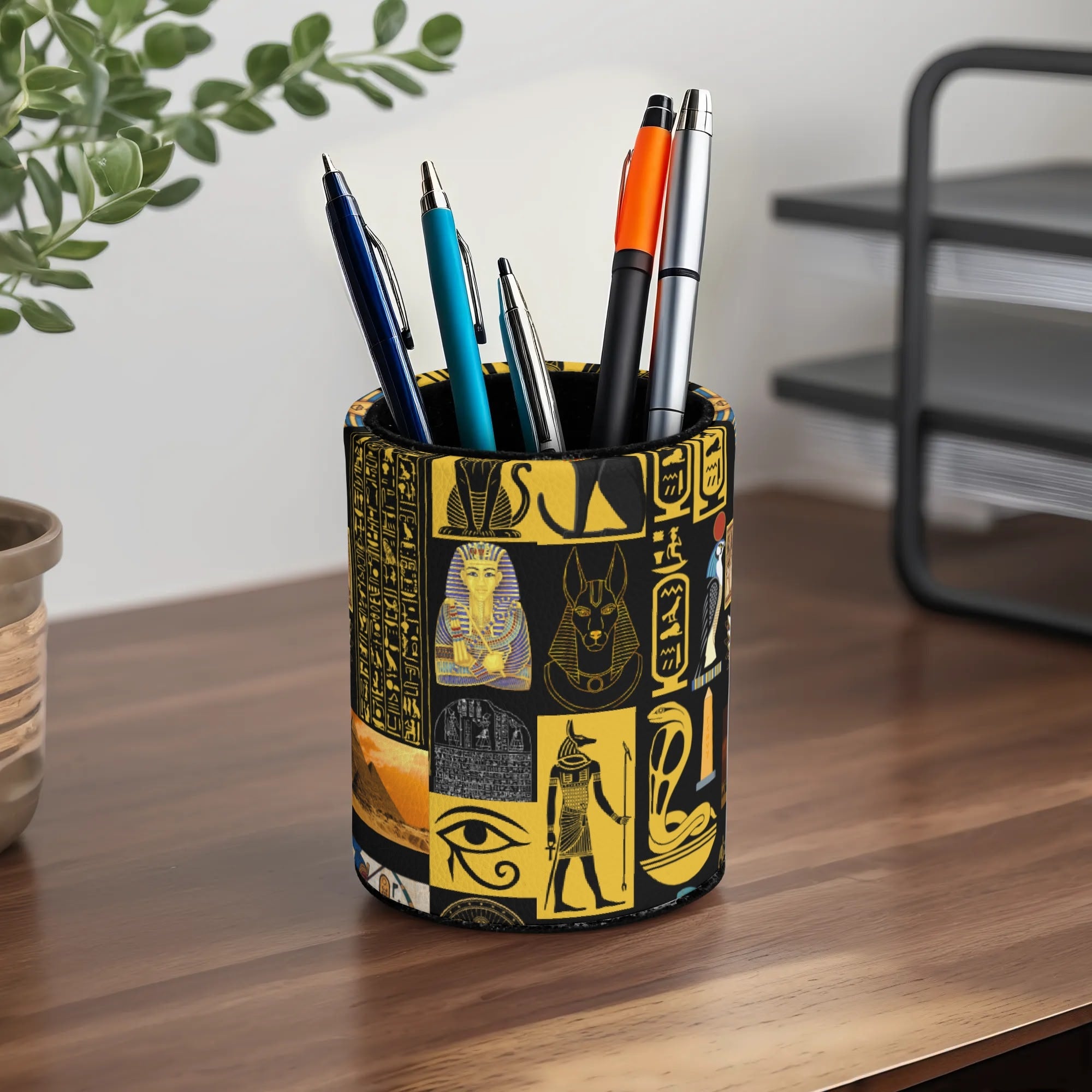 Ancient Egyptian PU Leather Toothbrush & Pencil Holder – Stylish, Durable, and Culturally Inspired