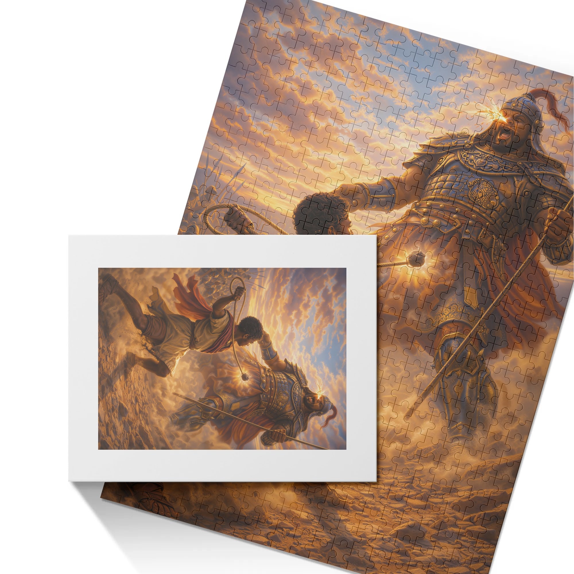 Step into one of the most iconic battles in biblical history with the Faith Over Giants – David and Goliath jigsaw puzzle—a breathtaking depiction of courage, determination, and unwavering faith in the face of impossible odds.