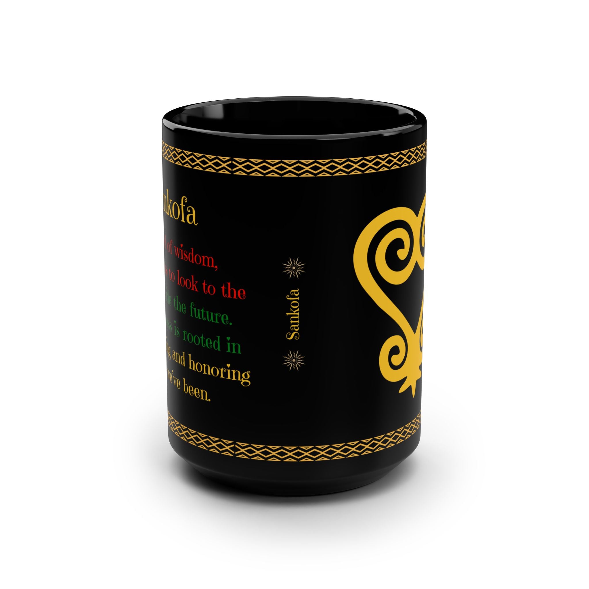 Start your day with purpose and pride. Our Black Sankofa 15oz Mug features the powerful Adinkra symbol Sankofa, a timeless reminder that the path to true progress is found by learning from the past. With bold gold accents and elegant traditional patterns, this mug is more than just drinkware—it’s a daily dose of cultural affirmation.
