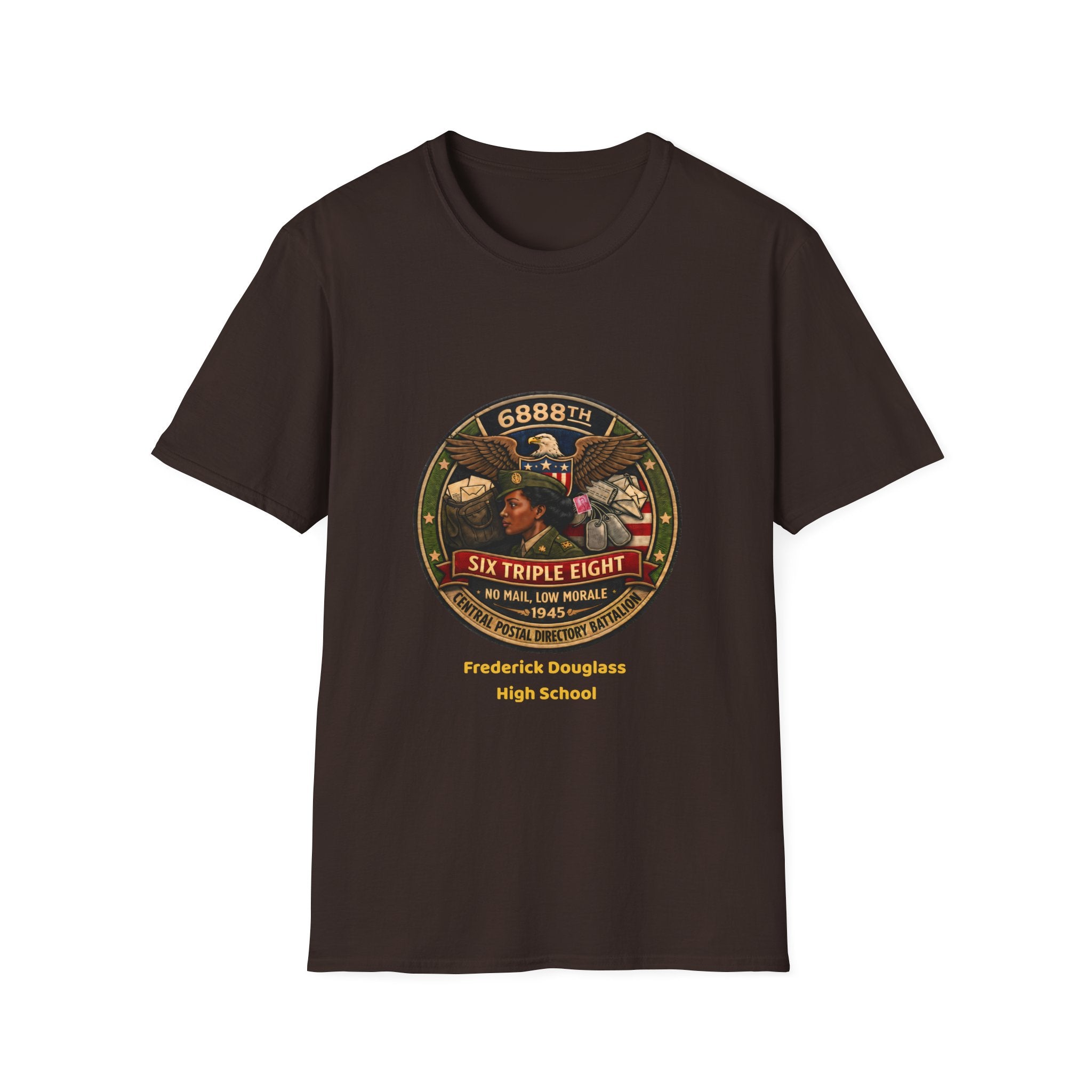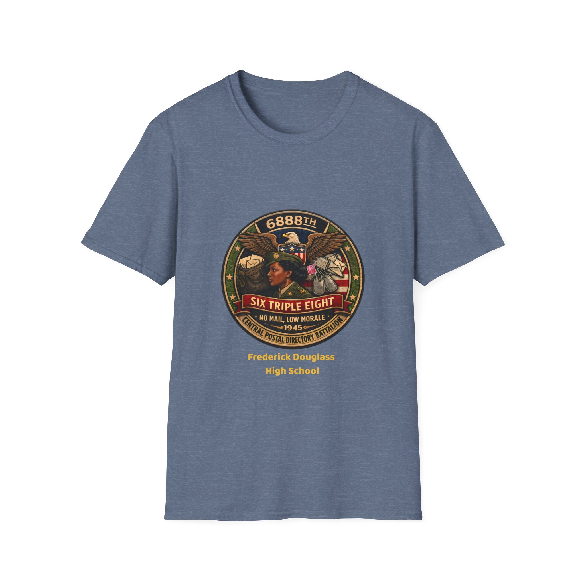 This powerful tee features a vibrant full-color graphic of the Six Triple Eight crest, flanked by symbolic icons that speak to their dedication and sacrifice. Whether you’re wearing it to honor history, make a statement, or spark conversation—this shirt carries meaning with every thread. Customize with a school or organization name.