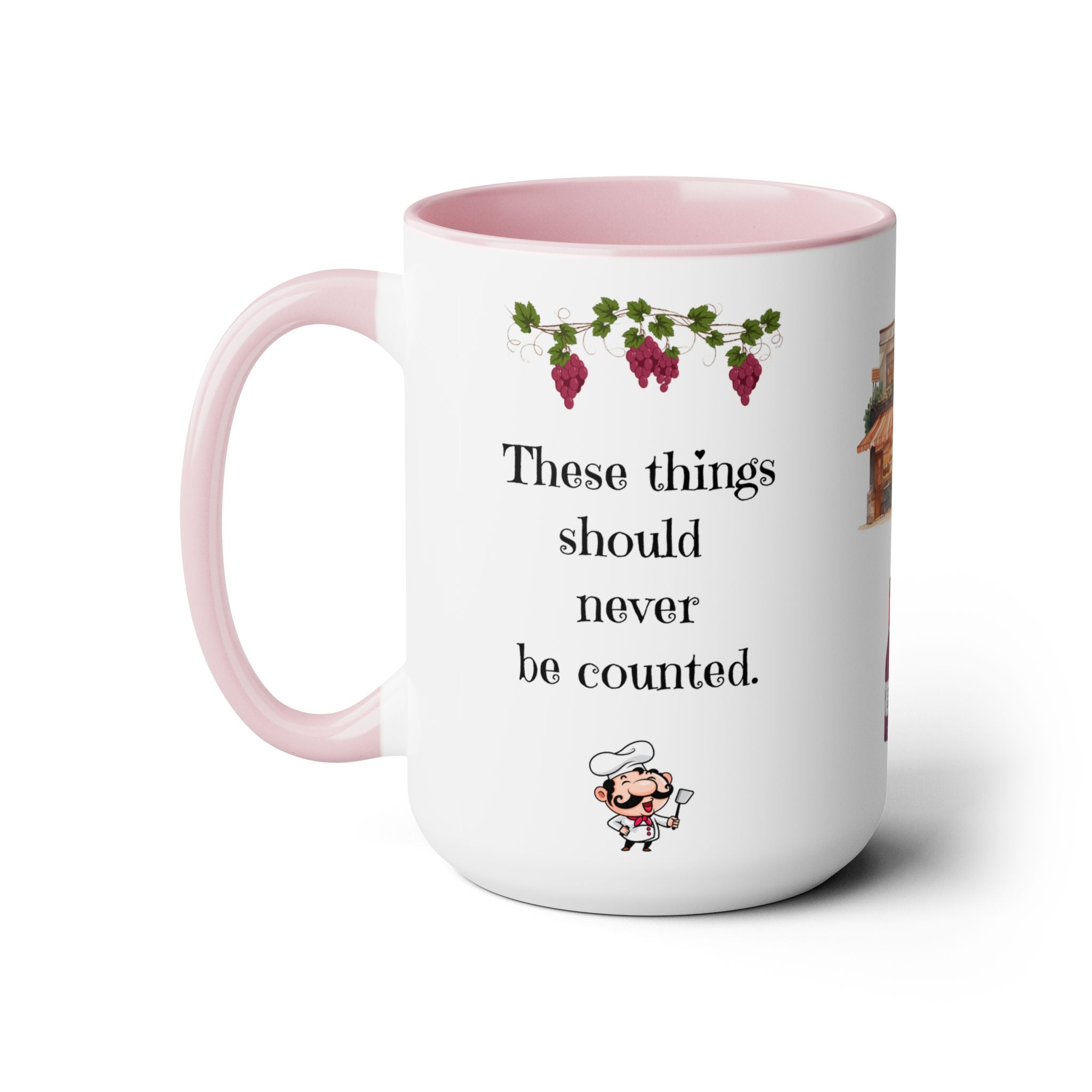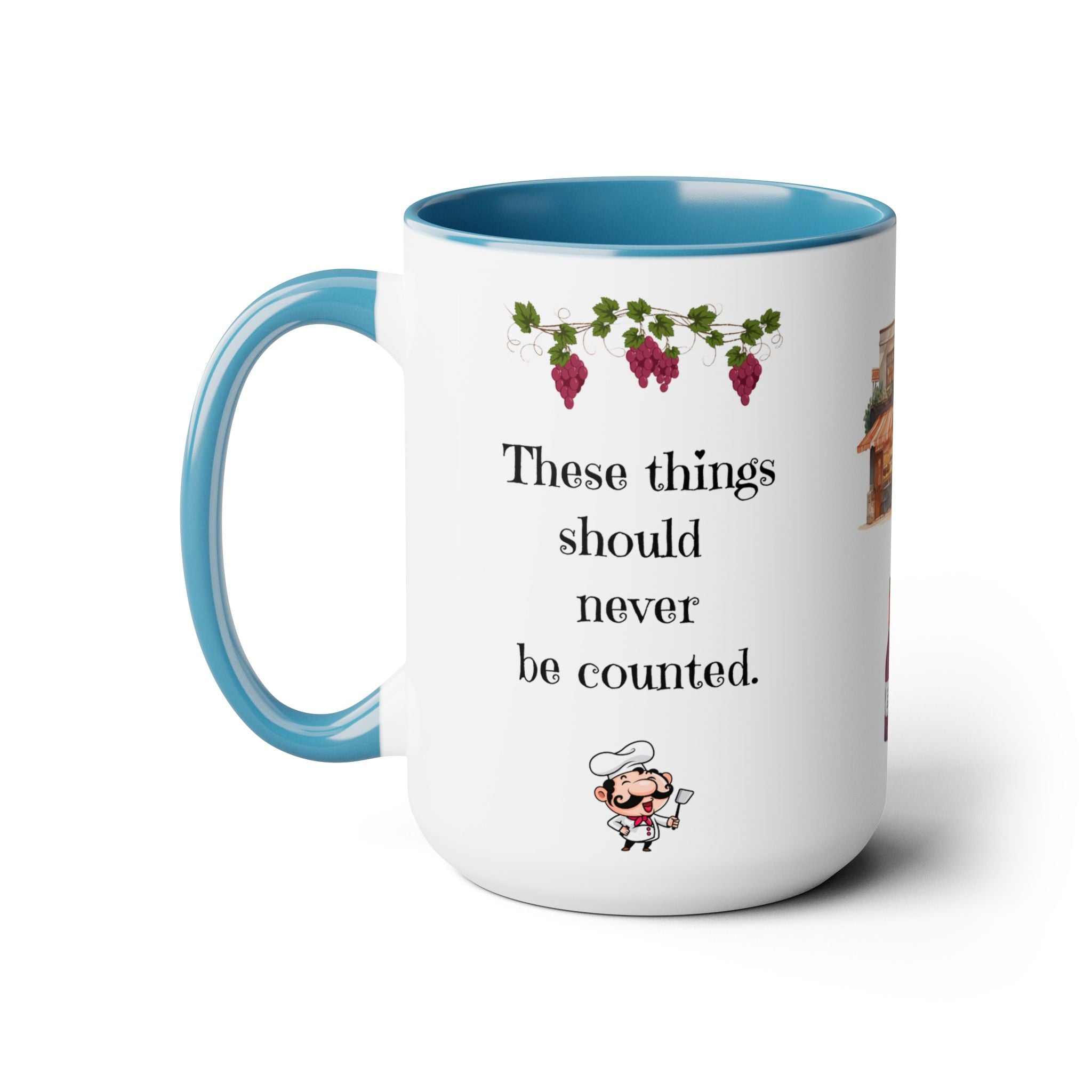 Wrapped in a beautifully illustrated design featuring watercolor grapes, a cozy Italian-style café, wine bottles, and romantic silhouettes, this mug brings a touch of European charm to your daily routine.